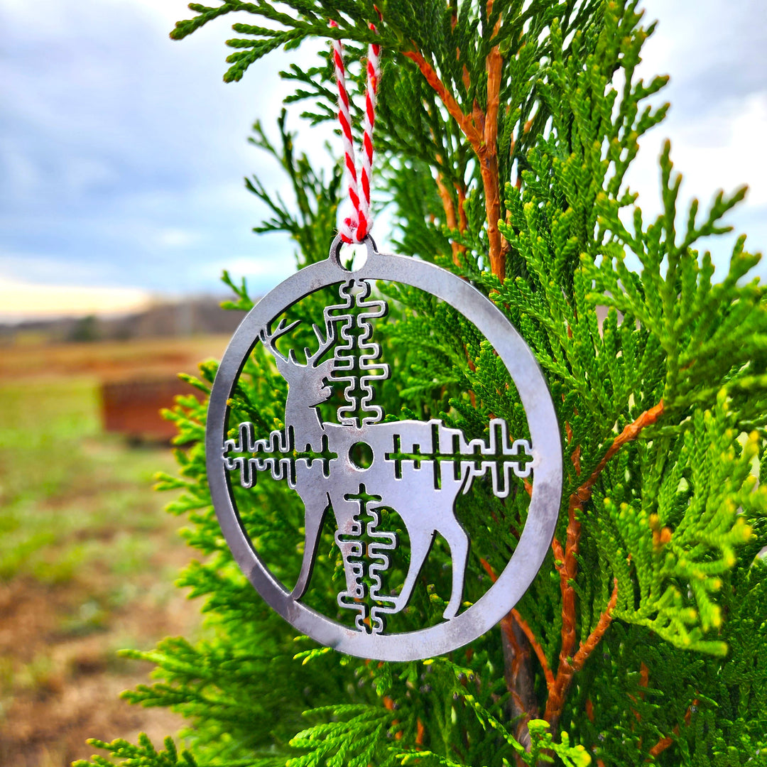 Deer Hunting Metal Ornament – Rustic Steel Buck Ornament with Scope Design | Handmade in Tennessee