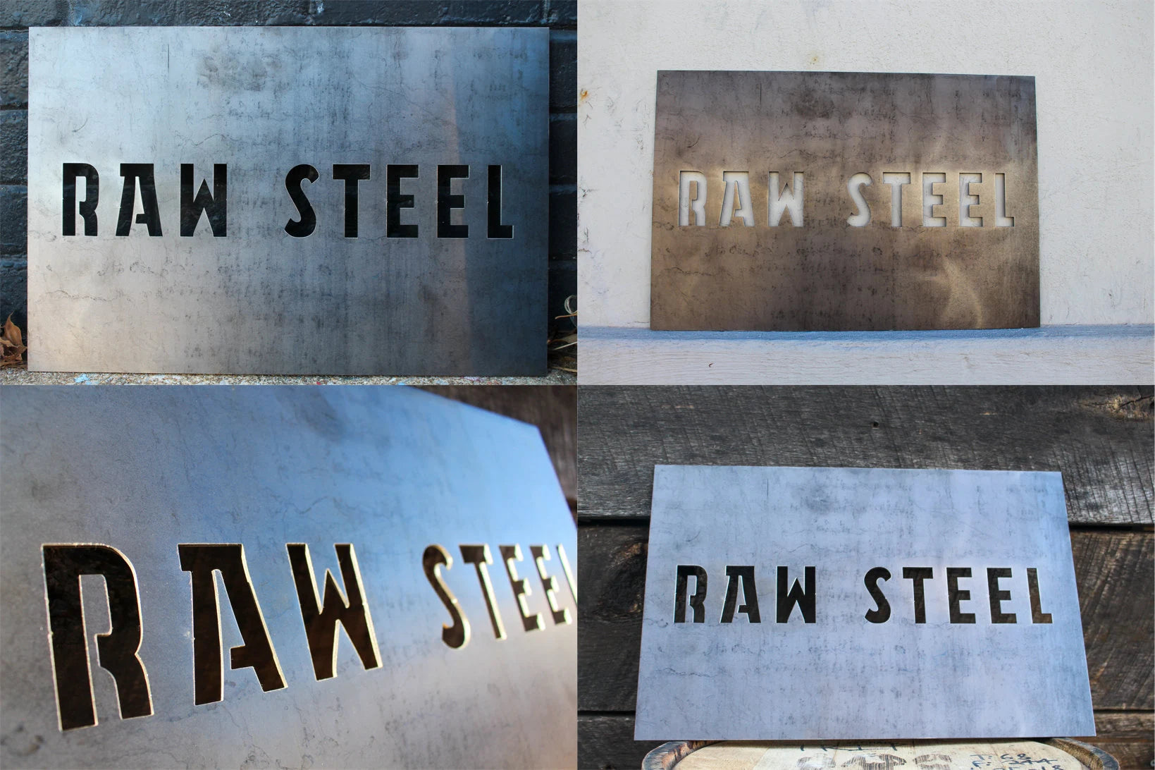RAW STEEL -DARK (EVEN BLACK) - Raw Steel is a highly recyclable material that gets reused over and over again. This makes the finish and color vary from piece to piece, to sometimes even black. Left untreated, the Raw Steel will rust and develop a natural patina completely unique to your environment.