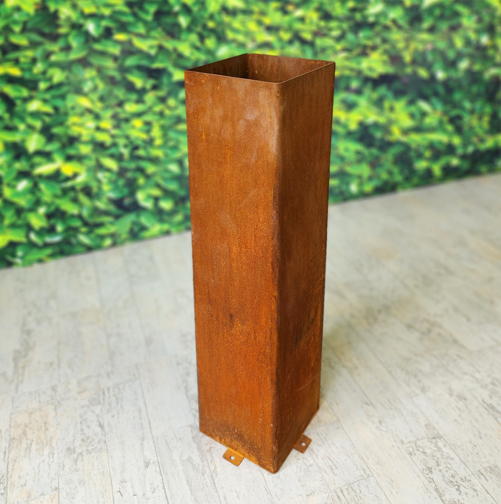 Garden columns are a great way to add visual contrast to your garden, flower bed, or deck. This blank garden design is solid on all four sides so it looks great from anywhere in your yard. Each column is welded by hand and pre-rusted so it will blend in with your landscape as soon as you place it in your space. They work great as a stand-alone monolith or combine 2 or more for extra texture. They even make great platforms for climbing vines or vegetable gardening where you have a plant that needs something to grow on like tomatoes or beans.