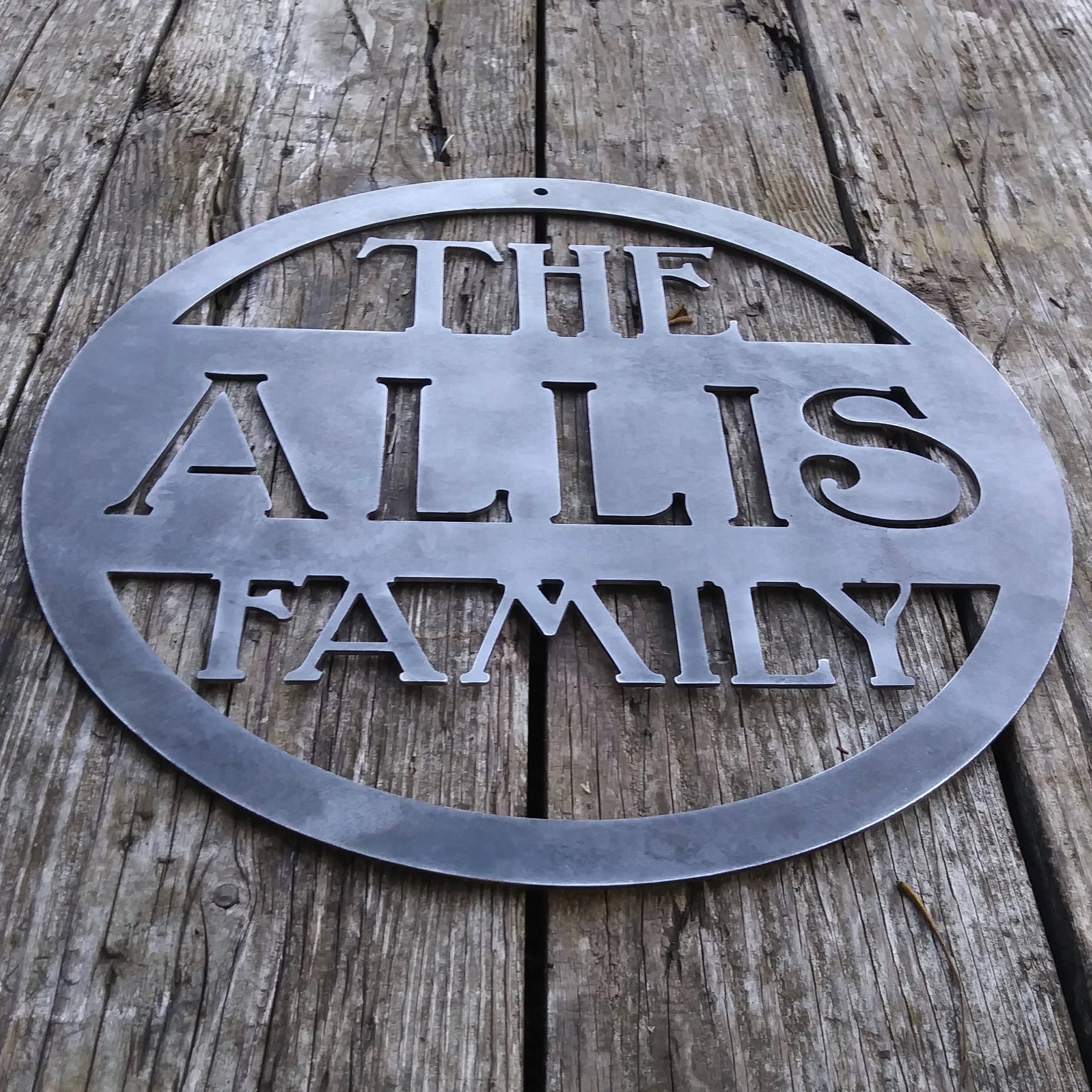 Let me make your custom family name sign an heirloom that will last for generations using 1/16" thick solid steel. Your family name sign will be cut out using a homemade CNC plasma table that precisely cuts out your design using a 50,000 degree plasma torch. Once your design cools I start the finishing process to remove any unwanted slag and smooth out any sharp edges leaving you with a raw steel sign perfect for your antique finish, paint, or natural rust.