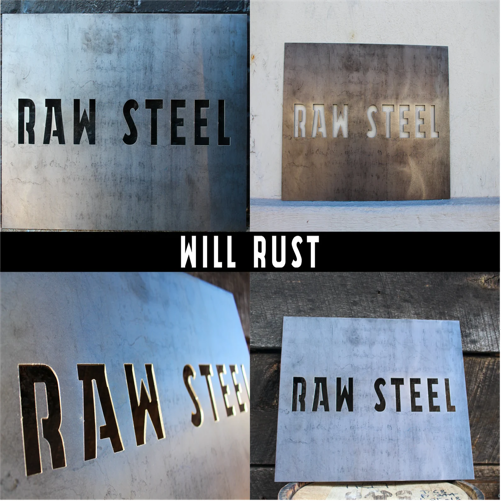 RAW STEEL -DARK (EVEN BLACK) - Raw Steel is a highly recyclable material that gets reused over and over again. This makes the finish and color vary from piece to piece, to sometimes even black. Left untreated, the Raw Steel will rust and develop a natural patina completely unique to your environment.